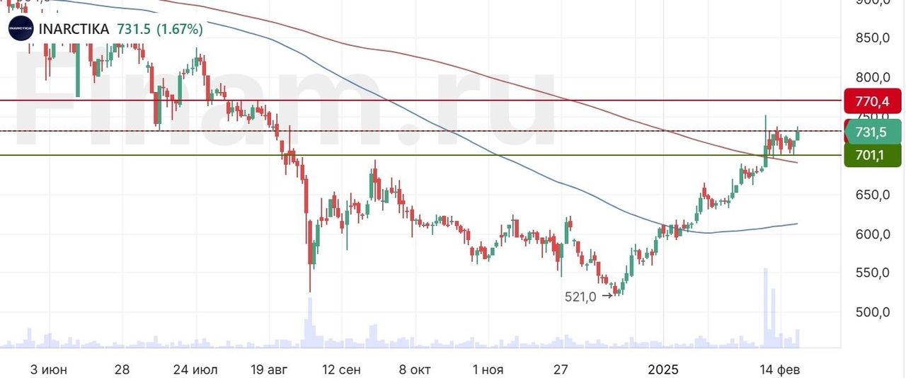 Акции «Инарктики» — вторые после X5 по потенциалу роста, апсайд составляет 14% при целевой цене 820 руб., а с учетом дивидендов доходность приближается к 21%. При этом отметим, что акции «Инарктики» обладают повышенным риском из-за серьезных биологических угроз, которые уже не раз реализовывались. Выручка компании за 2024 год увеличилась на 10,5% (г/г) и достигла рекордного уровня 31,5 млрд руб. Также компании удалось частично нарастить объем биомассы в воде (+45% за II полугодие) после массовой гибели рыбы в I полугодии 2024 года. Результаты «Инарктики» оказались лучше наших прогнозов (во многом благодаря значительному увеличению цен на продукцию), особенно в части объемов зарыбления.