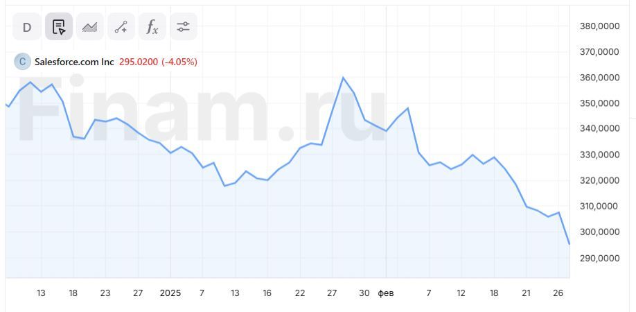 Корректировка прогнозов в худшую сторону не понравилась инвесторам. В 2026 финансовом году Salesforce ждет скорректированную прибыль в размере $11,09‒11,17 на акцию при выручке $40,5‒40,9 млрд, что означает рост на 7,4%. Из-за этого акции снизились на 8% после выхода отчета.