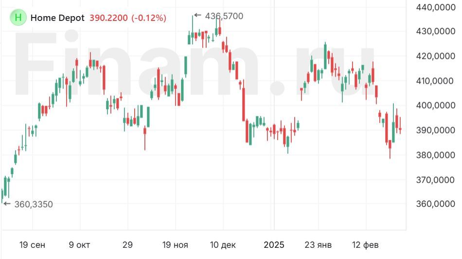 Home Depot представил собственный прогноз на 2025 ф. г. Ожидается, что рост продаж составит всего 2,8%, а увеличение сопоставимых продаж — 1,0%, это обусловлено высокими процентными ставками (покупатели откладывают крупные проекты по ремонту) и высокой базой 2024 ф. г. из-за 53-й недели в прошлом фингоду. Ожидается, что EPS снизится на 3%.