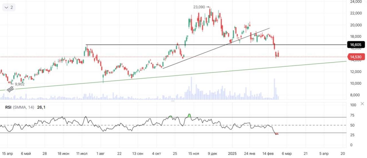 Недавно крипторынок снова ушел в коррекцию после взлома биржи ByBit (второй биржи по объему торгов) 21 февраля. Хакеры, предположительно из Северной Кореи, взломали сервера биржи и похитили около $1,4 млрд в ETH. Это стало одним из самых крупных взломов крипторынка. Данный факт разочаровал инвесторов в отношении его безопасности (ведь все вспомнили банкротство FTX), что привело к коррекции биткоина на 19%, которая продолжается до сих пор. Мы не считаем, что данный взлом может привести к банкротству биржи, что, в свою очередь, выльется в очередной коллапс крипторынка, как осенью 2022 года. Во-первых, ByBit уже через день полностью восстановила свои резервы, то есть все активы на бирже полностью обеспечены. Во-вторых, ByBit не запрещала клиентам выводы, которые возможны на фоне паники, возникающей при возникновении подобных ситуаций (такие панические выводы и стали одной из причин краха FTX). При этом, согласно данным блокчейна, пока не наблюдалось массовых выводов средств с кошельков крупных игроков на бирже. Наблюдая за грамотными действиями руководства биржи, мы считаем, что ByBit восстановит свою репутацию, а текущая реакция выглядит как возможность покупки криптоактивов до конца криптоцикла.