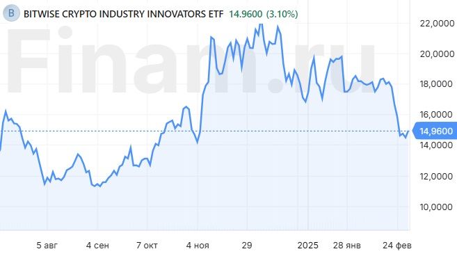 В состав фонда входят 30 эмитентов из разных сфер, связанных с отраслью криптовалют, от самых очевидных участников рынка, MicroStrategy и Coinbase, до менее очевидных — BlackRock и CME Group.
