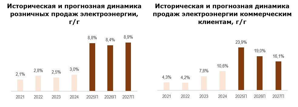 Опережающий рост энергопотребления на территории деятельности AEP. По оценкам руководства AEP, розничные продажи электроэнергии в 2025–2027 гг. будут расти на 8–9% в год. Главным драйвером роста, как ожидается, станут коммерческие потребители: в этом сегменте продажи электроэнергии, по оценкам AEP, будут расти двузначными темпами в ближайшие три года.
