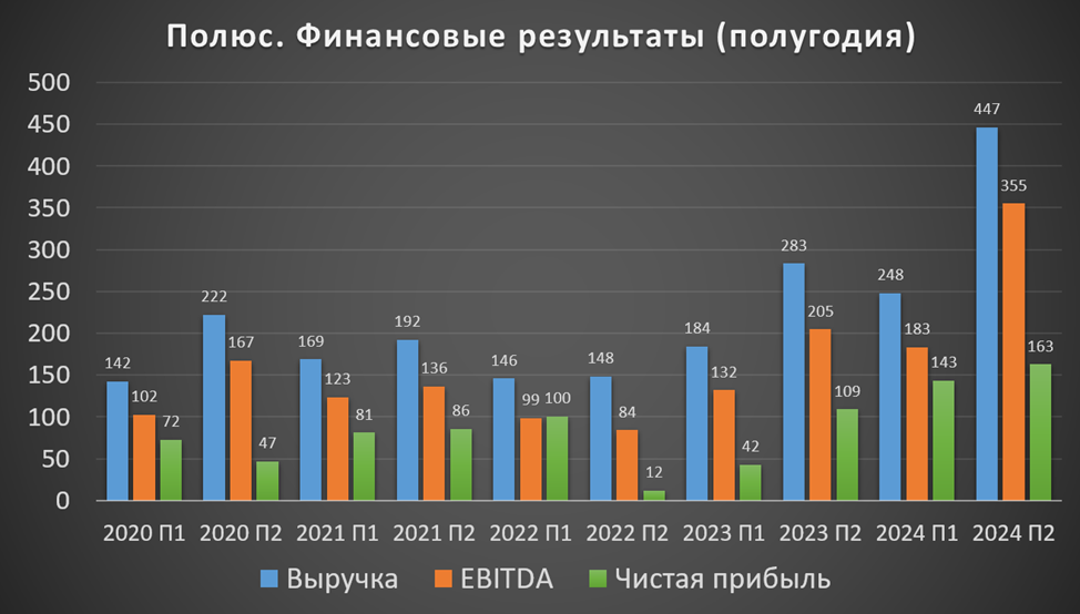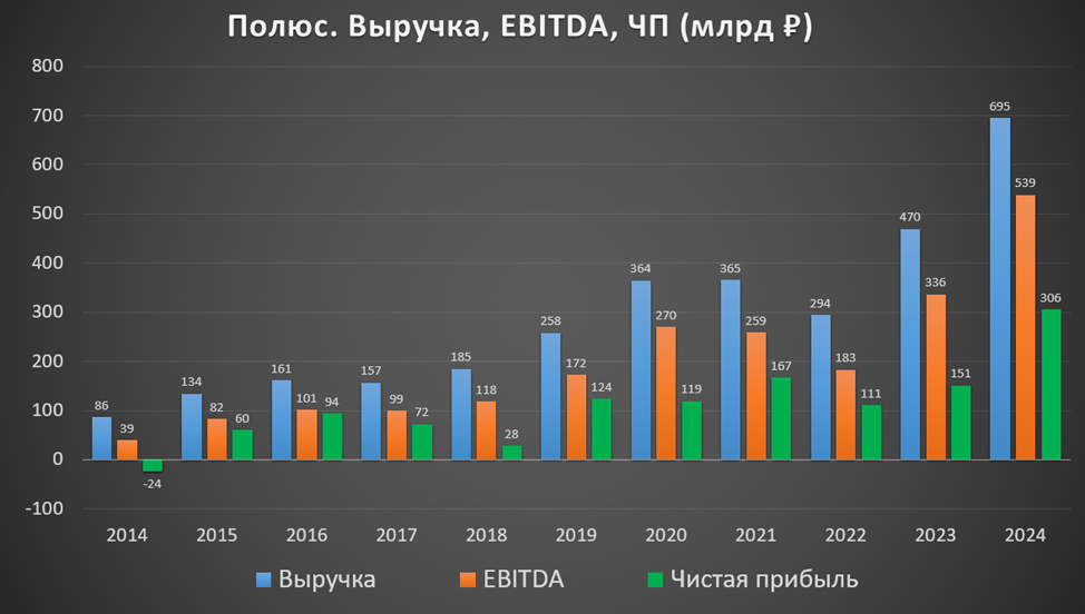 Финансовые результаты за 2024 год рекордные. Средние темпы роста за последние 5 лет: выручка 22%, EBITDA 25%, чистая прибыль 20%.