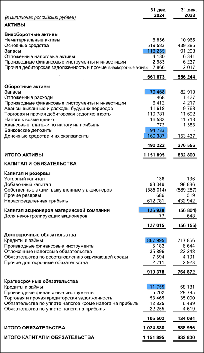 Кредиты и займы 868 млрд (+20% г/г). 90% в валюте. Средневзвешенная ставка 7,5%. Причем 90% займов с погашением после 2027 года.
