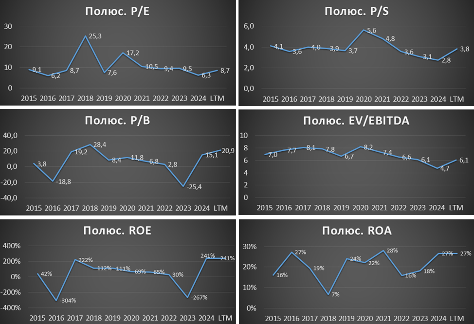 EV/EBITDA = 4,6; P/E = 6,1; P/S = 2,7; P/B = 14,6.
