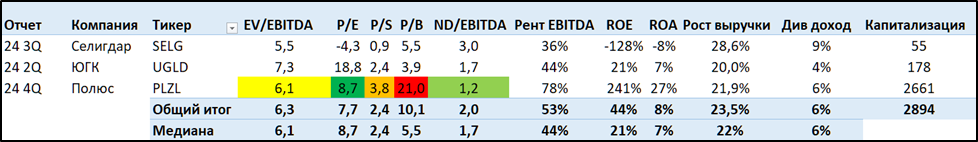 Также даже без учёта квазиказначейских акций, Полюс выглядит предпочтительней относительно других золотодобытчиков страны.