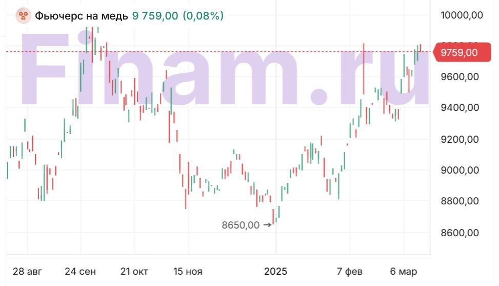 Помимо драгметаллов, существенно подросла медь – с начала года она подорожала на 12%, с примерно 8700 до 9760 долларов за тонну. Стратеги Citigroup прогнозируют рост цен на медь до $10 000 за тонну в ближайшие три месяца. А JP Morgan ожидает, что в 2025 году цены на медь на мировом рынке могут составить порядка 10,4 тыс. долларов за тонну, в 2026 году - 11 тыс. долларов. Подъем цен на медь JP Morgan связывает с возможным введением в США защитных пошлин против импорта меди и продукции на ее основе.