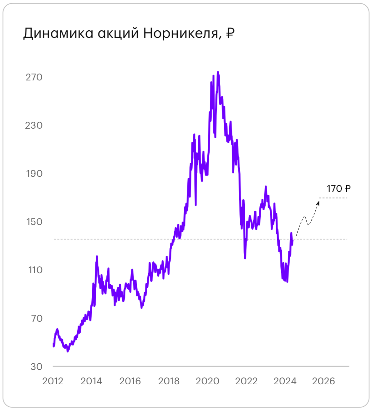 Компания оказалась под давлением из-за высоких капитальных затрат и снижения цен на металлы платиновой группы. Однако эти факторы по большей части уже отражены в цене акций. При этом Норникель - бенефициар потенциального улучшения геополитической ситуации и возможного смягчения санкций.