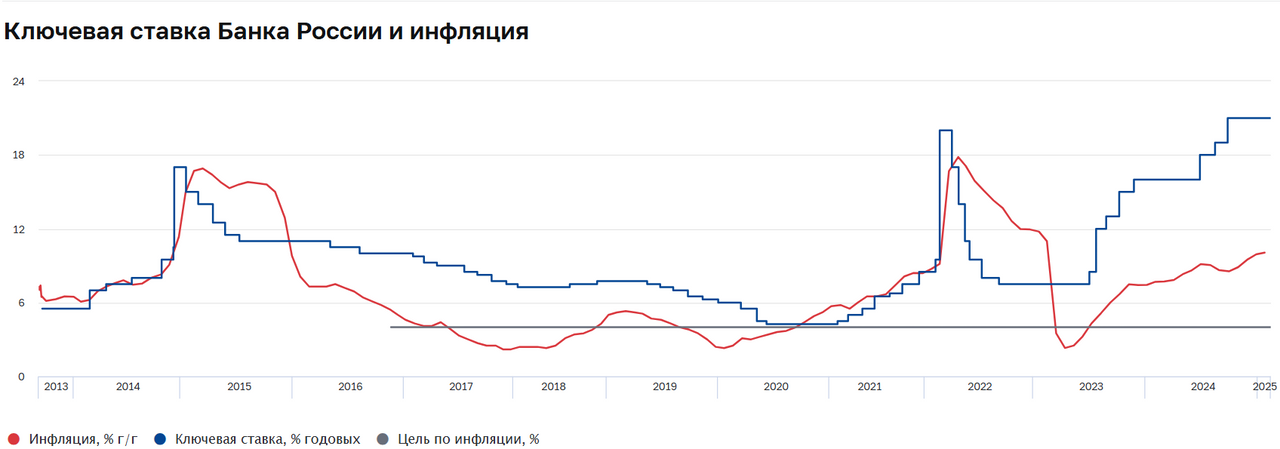 За последние недели оценка наблюдаемой инфляции в России остается высокой и сейчас она составляет 16,5%, находясь на годовых максимумах. Целевой показатель ЦБ составлят 4%.