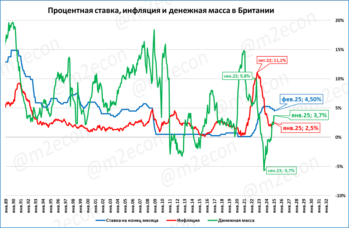 Январь стал первым месяцем с 2022 года, когда денежная масса в Британии росла быстрее цен. Данные за февраль пока неизвестны.