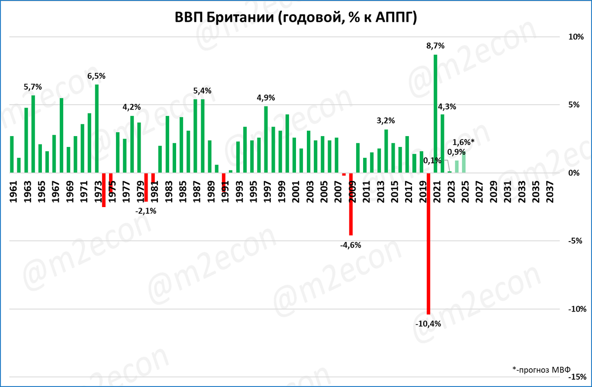 По прогнозу МВФ в 2025 году рост ВВП Британии ускорится до 1,6%.