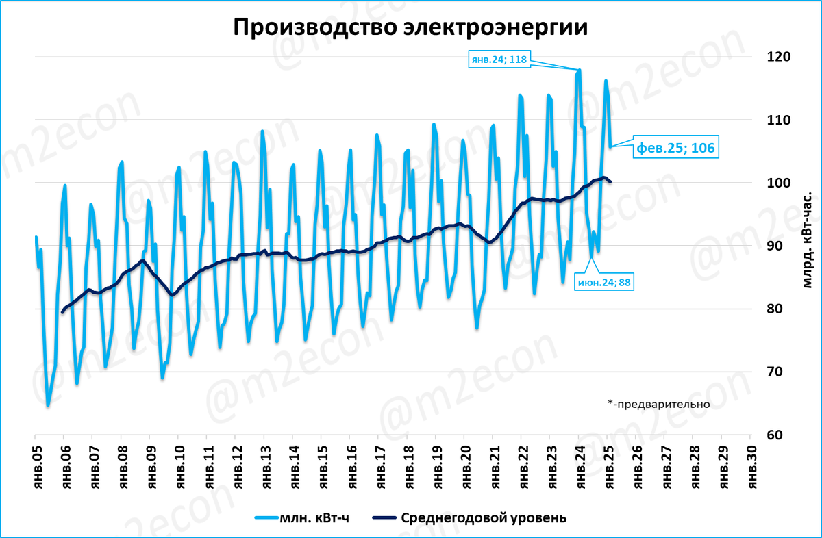 Также стоит учитывать, что в России показатель производства электроэнергии «зашумлён» температурным фактором.