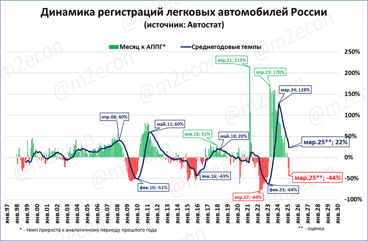 Падение по сравнению с февралём (-25%) ускоряется.