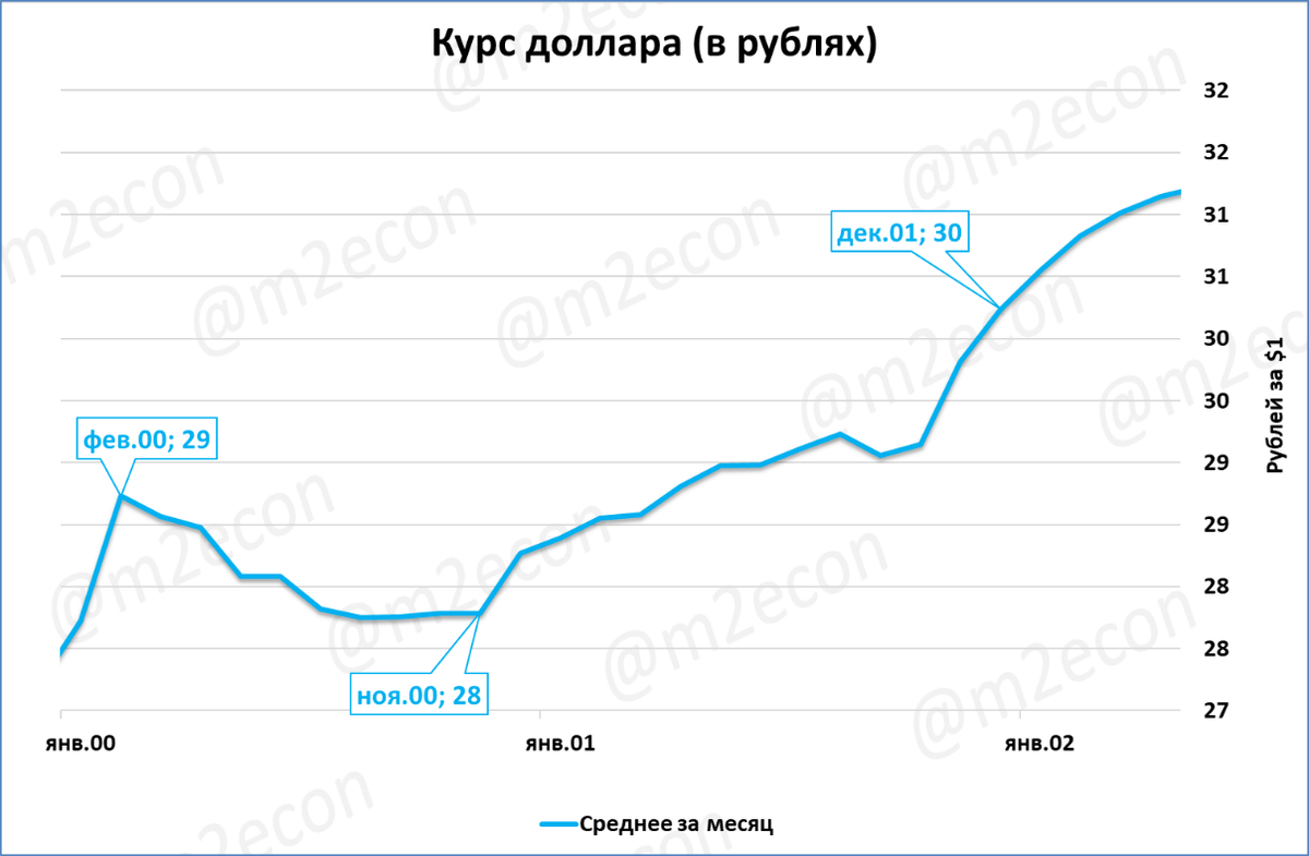 Рубль, укреплявшийся до этого в течение 9 месяцев, с декабря 2000 года начал ослабляться.