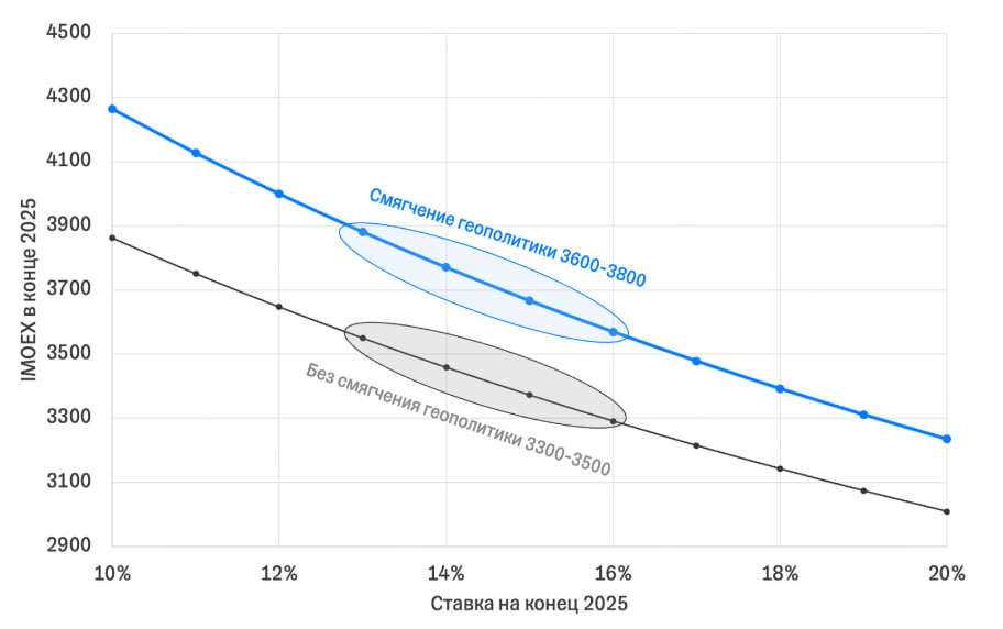 Безусловно, риски коррекции есть, но текущее сочетание макрофакторов неустойчиво, и мы в ближайшее время с большой вероятностью увидим одно из двух: либо замедление инфляции и снижение ставок, либо ослабление рубля. Оба этих фактора в текущей обстановке будут транслироваться в рост рынка акций. Без учета потенциального эффекта геополитического смягчения наш таргет по индексу на конец этого года лежит в диапазоне 3 300—3 500.