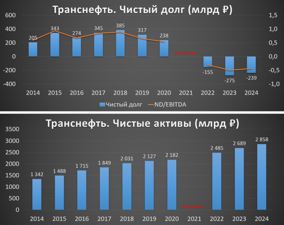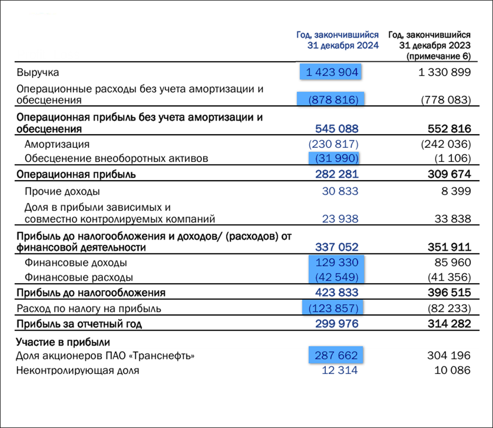 Операционные результаты в 2024 году снизились из-за санкций и ограничений ОПЕК+. Выручка подросла благодаря увеличению тарифов. Но EBITDA и чистая прибыль умеренно снизились из-за неденежных факторов, связанных с ростом ставки налога на прибыль. Финансовое положение отличное. Капитальные затраты высокие, но свободный денежный поток достаточно сильный.
