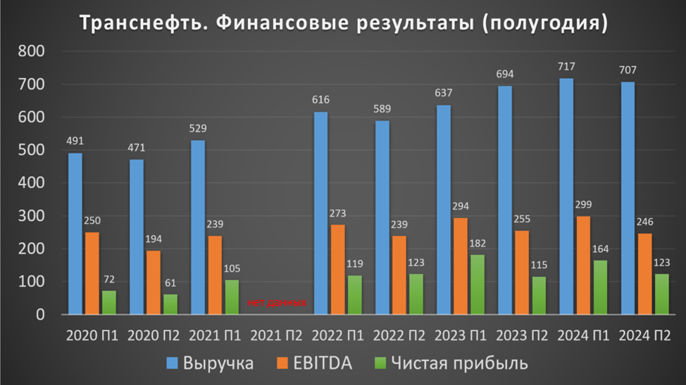 На диаграмме видим, что спад результатов пришёлся на второе полугодие, т.е. когда государство повысило налог на прибыль Транснефти в 2 раза.
