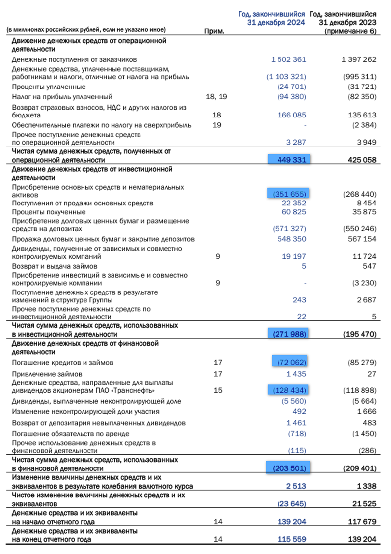 финансовая деятельность -203 млрд (-3% г/г). 72 из них приходится на погашение долга. И 128 млрд на выплату дивидендов.