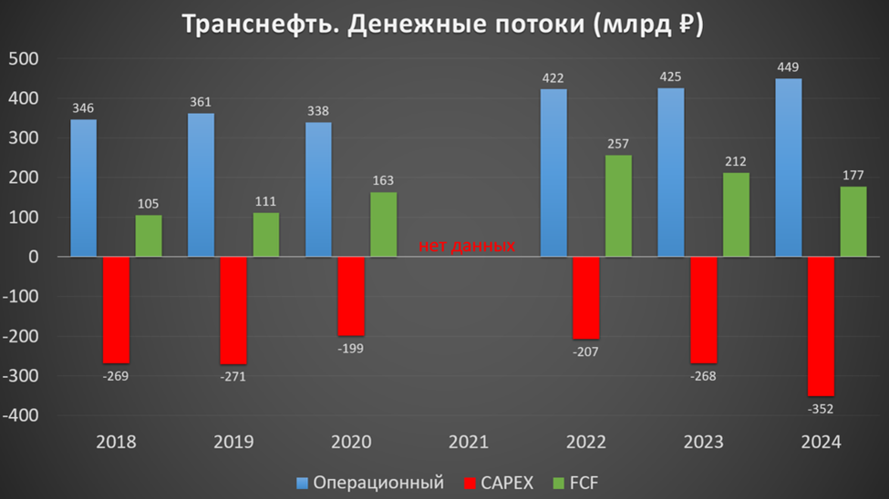 В итоге, свободный денежный поток 177 млрд (-16% г/г).