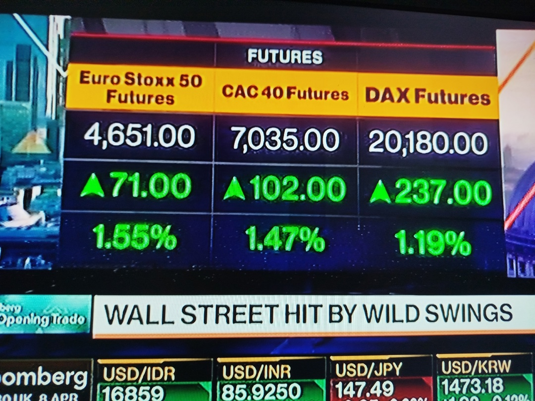 В 10:26 утра CNBC сообщает, что данные о 90-дневной тарифной паузе были неверными.