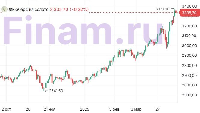 Золото вчера в очередной раз переписало исторический максимум, поднявшись выше отметки $3350 за унцию. Рост продолжается уже 4 месяца подряд практически без коррекций. Сегодня драгметалл немного остывает, но потенциал роста, судя по всему, ещё не исчерпан.