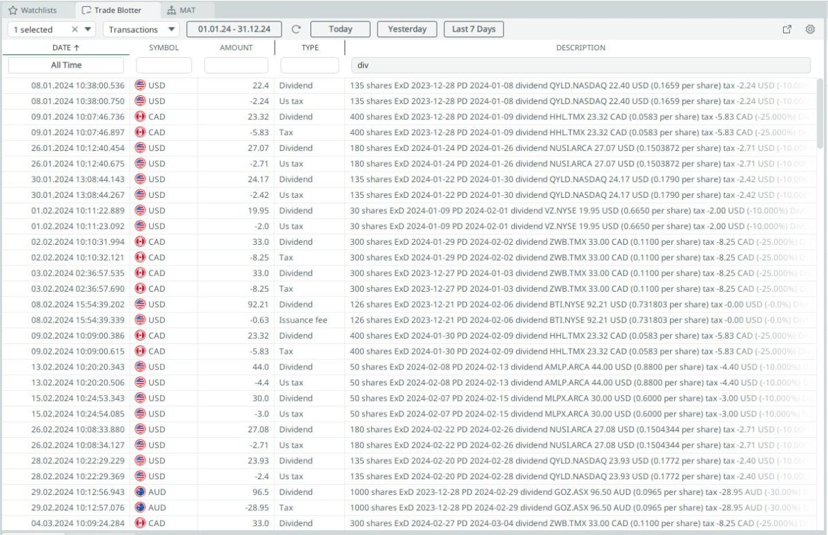 Пример отчета иностранного брокера по выплаченным дивидендам и удержанным в стране-источнике налога (Фото: РБК Инвестиции)