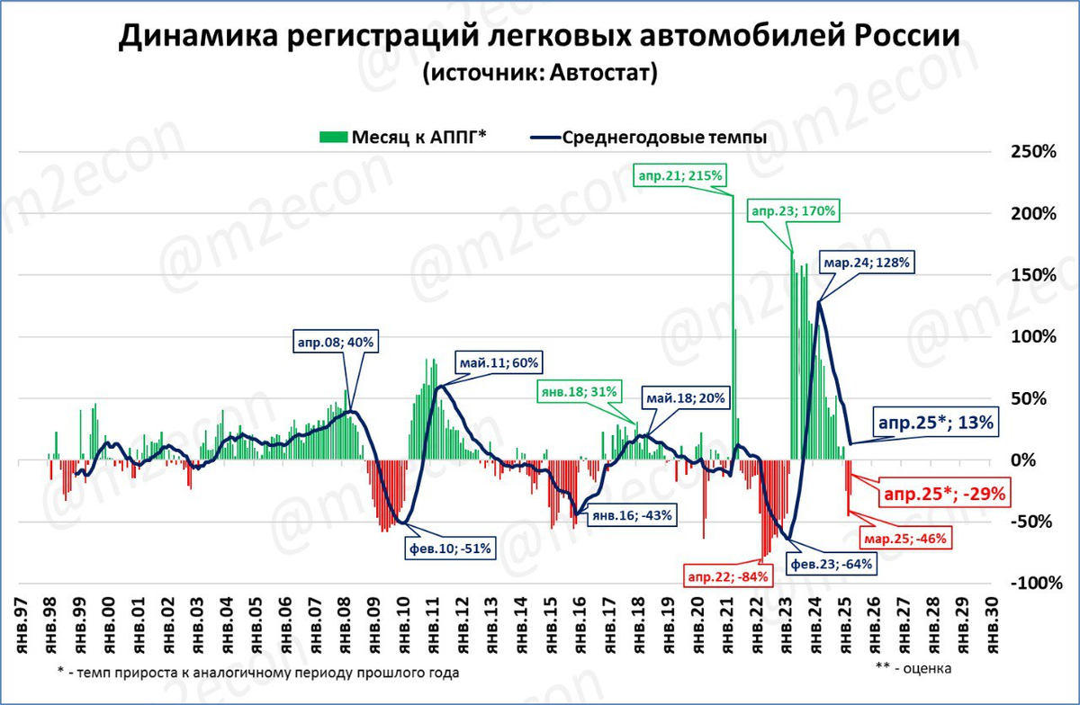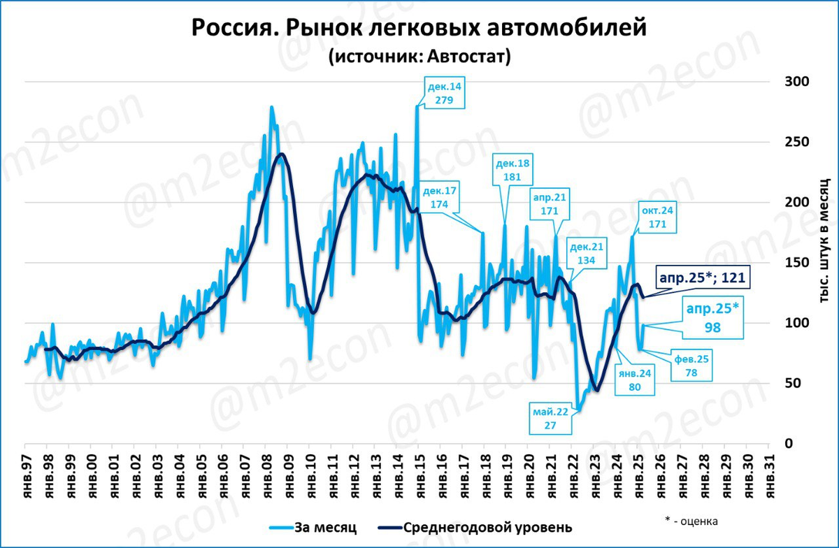 Оценка рынка легковых в апреле: 98 тыс. (-29%)