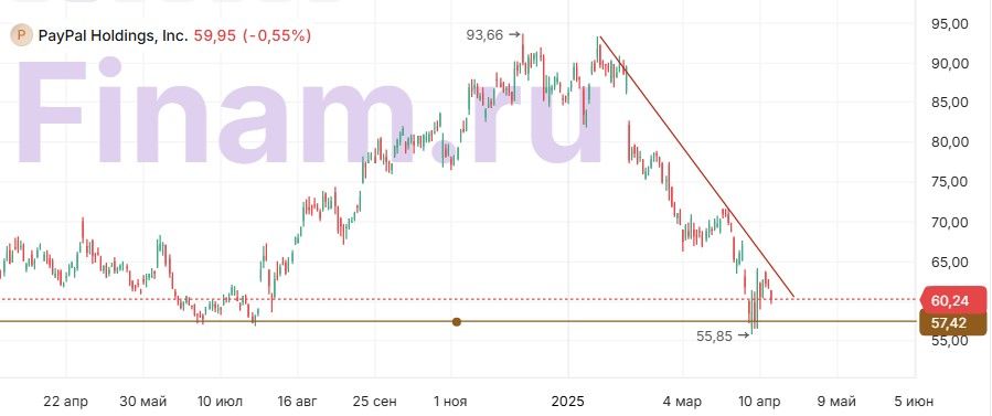 PayPal (PYPL) — крупный игрок в сфере цифровых платежей. Компания известна своими цифровыми кошельками PayPal и Venmo, а также активно развивается в сегменте платежных решений для бизнеса.