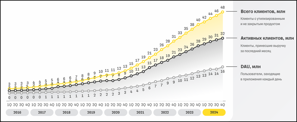Количество клиентов 48 млн чел (+18% г/г).