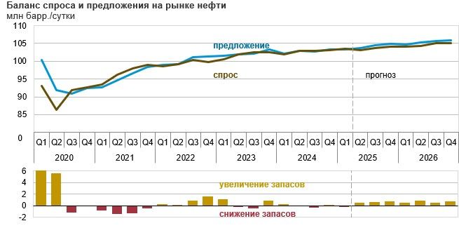 При этом текущие цены уже начинают давить на рост предложения вне ОПЕК+. В частности, в США, крупнейшем в мире производители ЖУВ, во многих ключевых регионах бурение новых скважин для небольших компаний может быть нерентабельным при стоимости нефти WTI ниже $60-65 за баррель. Однако этот эффект проявится не мгновенно, в связи с чем пока Минэнерго США ожидает умеренного профицита на рынке нефти в ближайшие кварталы, что может давить на цены.