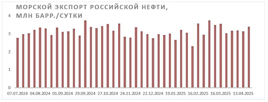 Некоторым позитивом является устойчивость российского экспорта к введенным в январе санкциям, которые включали попадание в черный список США «Сургутнефтегаза» и «Газпром нефти». По данным Bloomberg, на данный момент морской экспорт российской нефти полностью восстановился после просадки, наблюдавшейся в январе-феврале, то есть сразу после введения последних санкций США против сектора. Частично восстановление экспорта может быть связано с тем, что администрация Трампа менее скрупулезно следит за исполнением санкций, а частично — с тем, что стоимость Urals опустилась ниже ценового потолка в $60 за баррель, что упрощает ее экспорт. В мае позитивная динамика по объему экспорта может продолжиться на фоне роста добычи в рамках соглашения ОПЕК+.