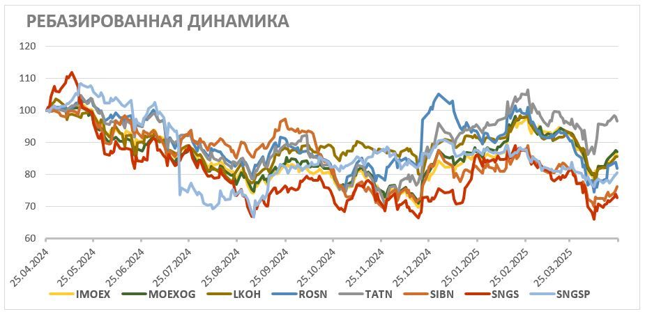 В базовом сценарии мы считаем вероятным отскок рублевых цен на нефть хотя бы до 5500 руб. за баррель в ближайшие кварталы, в том числе за счет ослабления рубля. Напомним, что в бюджет РФ на 2025 год заложена стоимость Urals более чем в 6700 руб. Исторически настолько сильное расхождение между фактической и заложенной в бюджет ценой на нефть практически всегда частично компенсировалось либо за счет ослабления рубля, либо за счет отскока мировых цен на нефть. В то же время даже в сценарии отскока цен I полугодие у нефтедобывающих компаний может быть слабым.