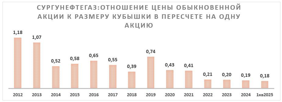 В первую очередь обыкновенные «Сургутнефтегаза» выделяются практически рекордным в истории дисконтом к размеру «кубышки», объем которой по итогам 2024 года, по нашим оценкам, мог достигнуть 6,4 трлн руб. при капитализации компании всего в 1,3 трлн руб. Мы все еще считаем вероятность раскрытия «кубышки» в ближайшее время крайне низкой, однако полагаем, что с течением времени вероятность такого события не уменьшается, в связи с чем дисконт акций по отношению к размеру денежных средств также не должен снижаться. Другим позитивным фактором в кейсе обыкновенных акций «Сургутнефтегаза» является рост процентных доходов на фоне жесткой ДКП, так как порядка 20% «кубышки» размещены в рублях. При этом сдерживающими факторами являются крепкий рубль, что может приводит к убыткам от валютной переоценки, а также низкие дивиденды — ожидаем, что по итогам 2024 года выплаты на обыкновенную акцию составят 0,85 руб. (3,5% доходности). Наша текущая целевая по обыкновенным акциям «Сургутнефтегаза» составляет 35,7 руб., апсайд — 48%.