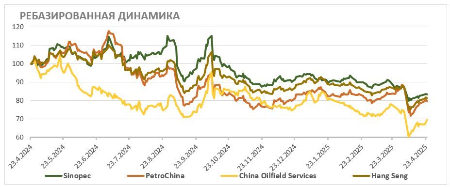В последние месяцы многие представители китайского нефтегазового сектора корректировались вместе с широким рынком из-за эскалации торговых войн и последующего снижения мировых цен на нефть. Относительно максимумов, наблюдавшихся осенью 2024 года, представители сектора потеряли 18-29%, что в некоторых случаях мы считаем избыточным снижением.