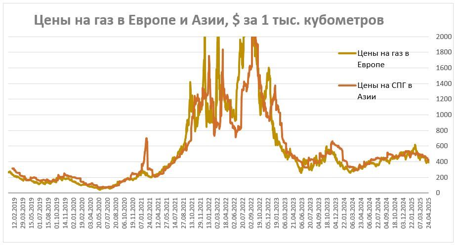 На данный момент заполненность ПХГ составляет около 37%, что выше уровня 2021-2022 гг., но заметно ниже, чем в 2023-2024 гг., когда ПХГ в этот период года были заполнены на 58-62%. С учетом остановки транзита через Украину, неопределенности относительно погоды и ограниченности предложения на мировом рынке СПГ полагаем, что в ближайшие месяцы цены на газ в Европе могут подняться ближе к $500 за тыс. кубометров, так как европейские импортеры будут вынуждены бороться за свободные объемы СПГ с азиатскими потребителями.