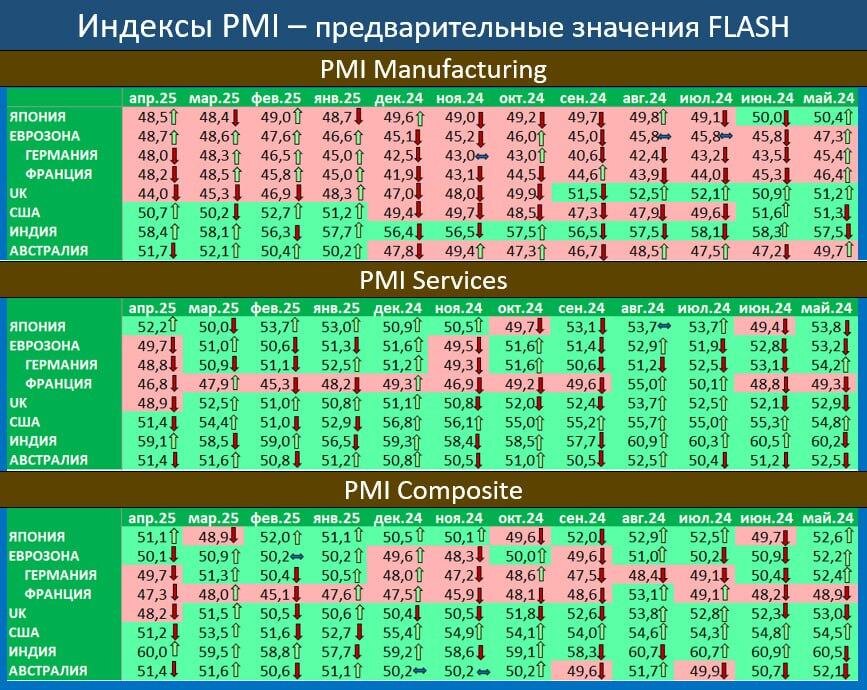 Опубликованы предварительные индексы PMI по некоторым странам.