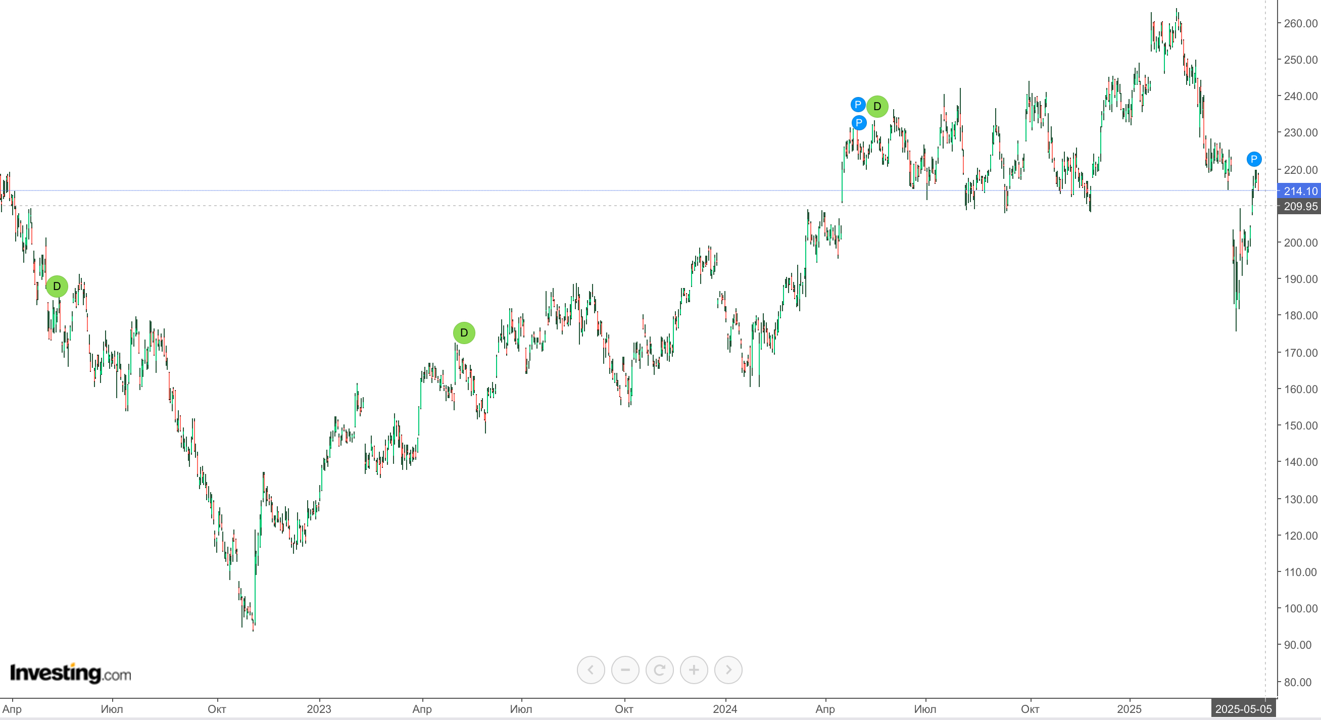 Акции ADS преодолели сопротивление на отметке 208 евро и в случае закрепления над ней смогут подняться до 232 евро.
