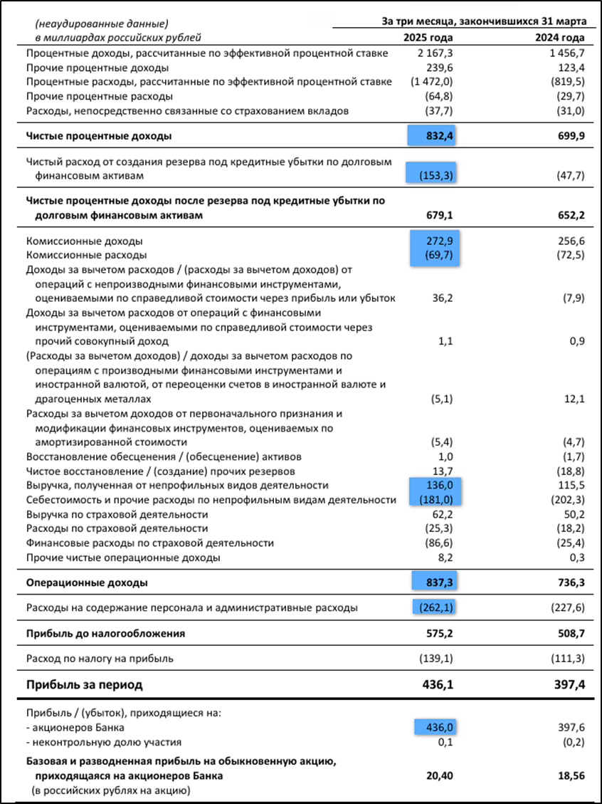 Чистый процентный доход (ЧПД) 832 млрд (+19% г/г).
