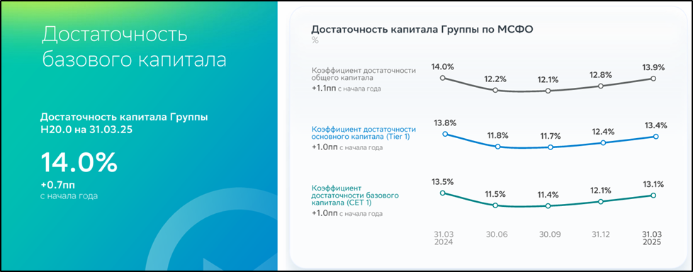 Отдельно отмечу коэффициент достаточности капитала банковской группы, который теперь важен для дивидендов, он составил 14% (+0,7 пп с начала года).