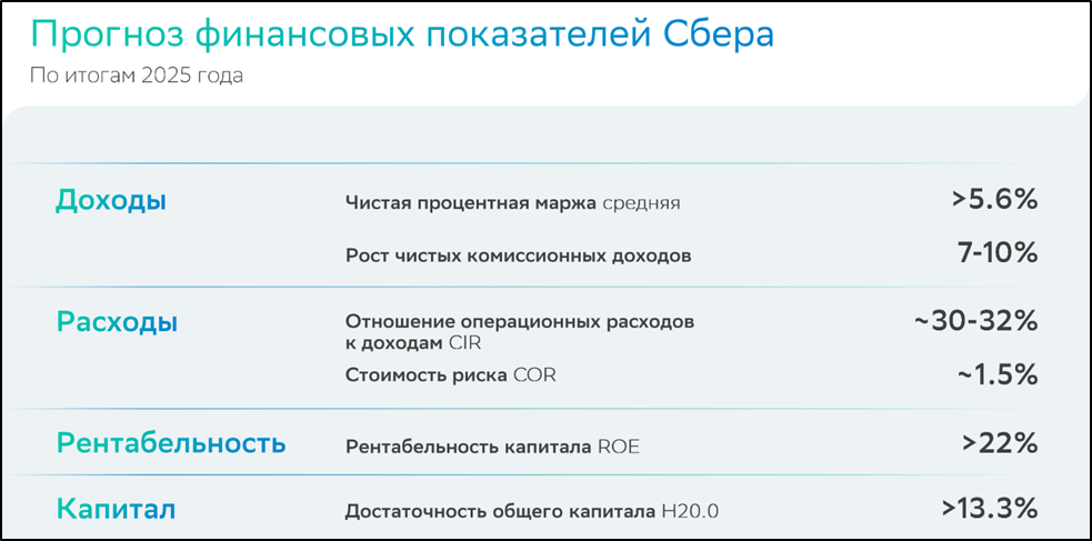 По итогам 2025 года ожидается, что ЧПМ (Чистая процентная маржа) будет выше 5,6% (а сейчас 6,1%). Рост комиссионных доходов 7-10%. Рентабельность капитала более 22%. Достаточность базового капитала должна быть выше 13,3%.