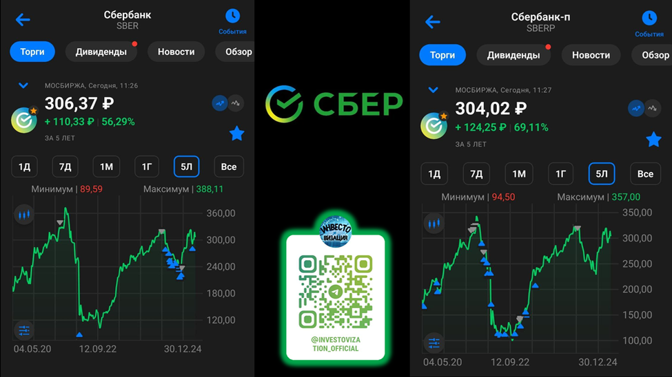 Капитализация = 7 трлн (SBER = 307₽; SBERP = 304₽).