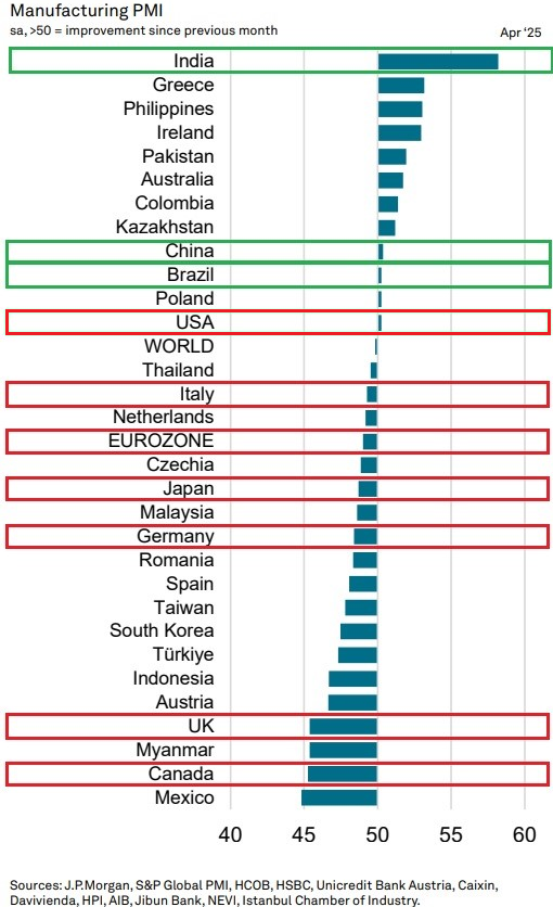 В апреле индекс деловой активности в мировой обрабатывающей промышленности (PMI manufacturing) упал ниже 50 пунктов, он составил 49,8.