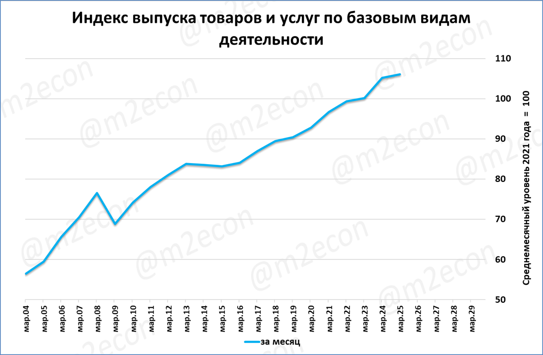 В марте выпуск базовых отраслей (ВБО) составил 106% к среднемесячному уровню 2021 года.