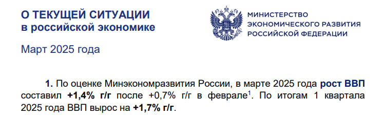 Выпуск базовых отраслей в марте вырос на 0,9% к марту прошлого года. Это около 60% ВВП. Минэкономразвития оценило рост ВВП в 1 квартале: +1,4%.