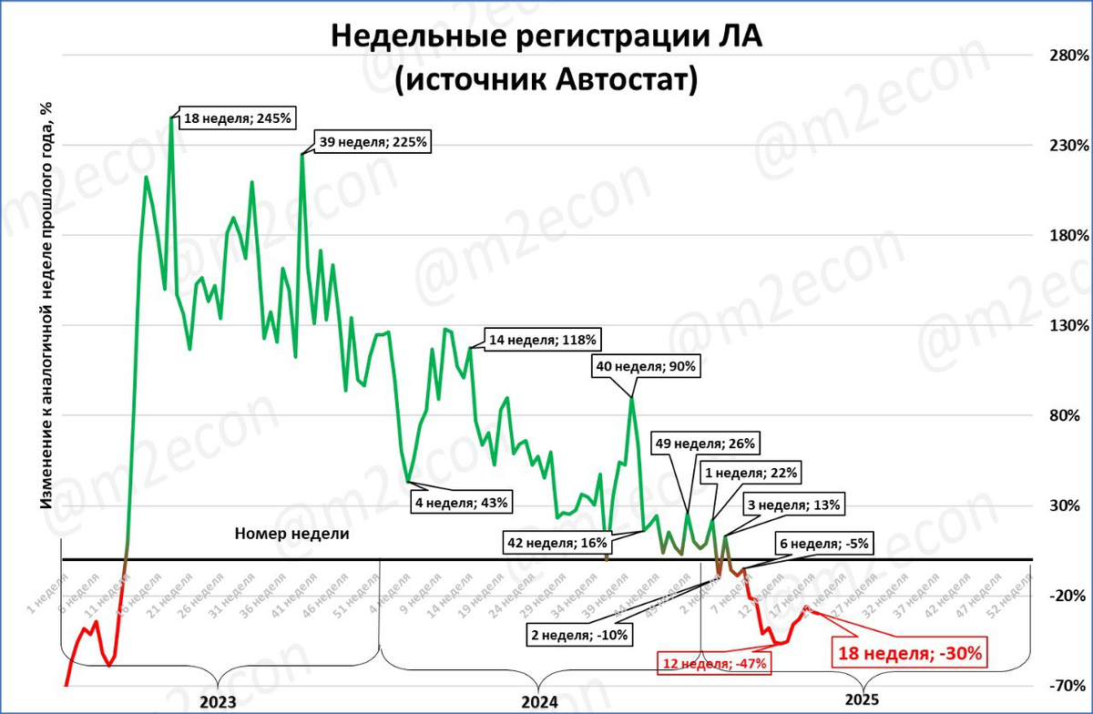 Это -30% к 18 неделе прошлого года (-29% на прошлой неделе).