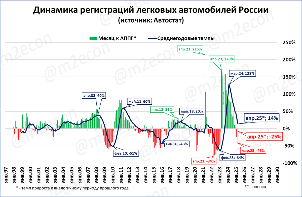 Если принять «скромную» оценку рынка (103 тыс.), то падение в апреле составит -25%.