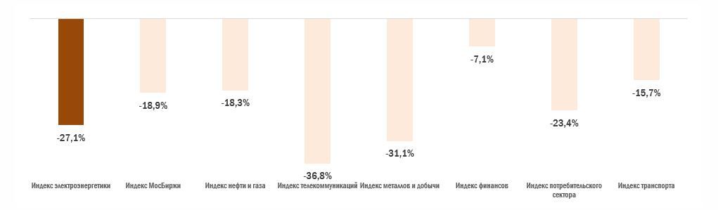 В начале 2025 года акции российских электроэнергетических компаний оставались в числе аутсайдеров на фондовом рынке. С учетом специфики их бизнеса и ориентации преимущественно на внутренний рынок, котировки сектора ожидаемо не участвовали в ралли февраля–марта, вызванном оптимизмом инвесторов относительно прогресса в урегулировании украинского конфликта. За последний год отраслевой индекс электроэнергетики снизился на 27,1%, тогда как индекс МосБиржи потерял 18,9%.