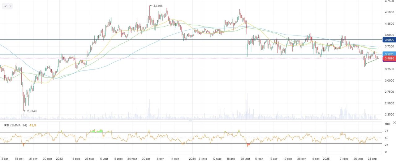 Во-вторых, американская экономика уже демонстрирует признаки резкого замедления: по итогам I квартала ВВП сократился на 0,3% (г/г). Во II квартале негативное влияние торговых войн, скорее всего, проявится в полной мере, что может привести экономику США к технической рецессии уже в первой половине 2025 года. Ослабление экономической активности может подтолкнуть ФРС к более активному снижению ключевой ставки, однако пока представители регулятора сохраняют осторожную риторику, ссылаясь на инфляционные риски, связанные с введением пошлин.
