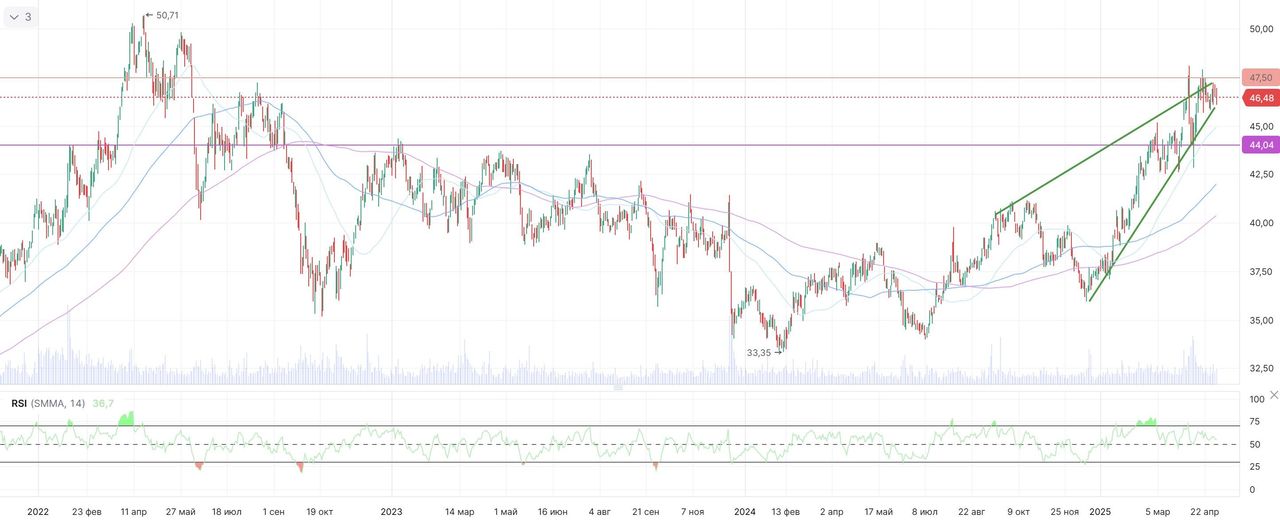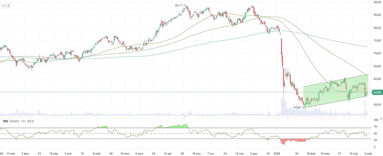 Инвестиционную привлекательность бумаг также поддерживает относительно высокая дивидендная доходность — по нашим оценкам, она может составить около 3,7% в ближайшие 12 месяцев при выплате $1,60 на акцию. Компания намерена увеличивать дивиденды в среднем на 5–7% в год в 2024–2028 гг., сохраняя коэффициент выплат на уровне около 60% от чистой прибыли.