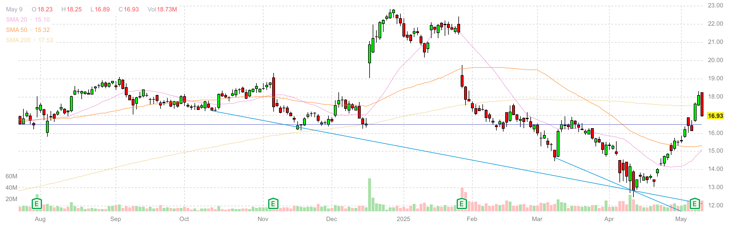 Bear Case ($15): Рост выручки замедляется до 3%, и компания изо всех сил пытается расширить маржу. Акции дрейфуют, но не падают благодаря стабильному денежному потоку.